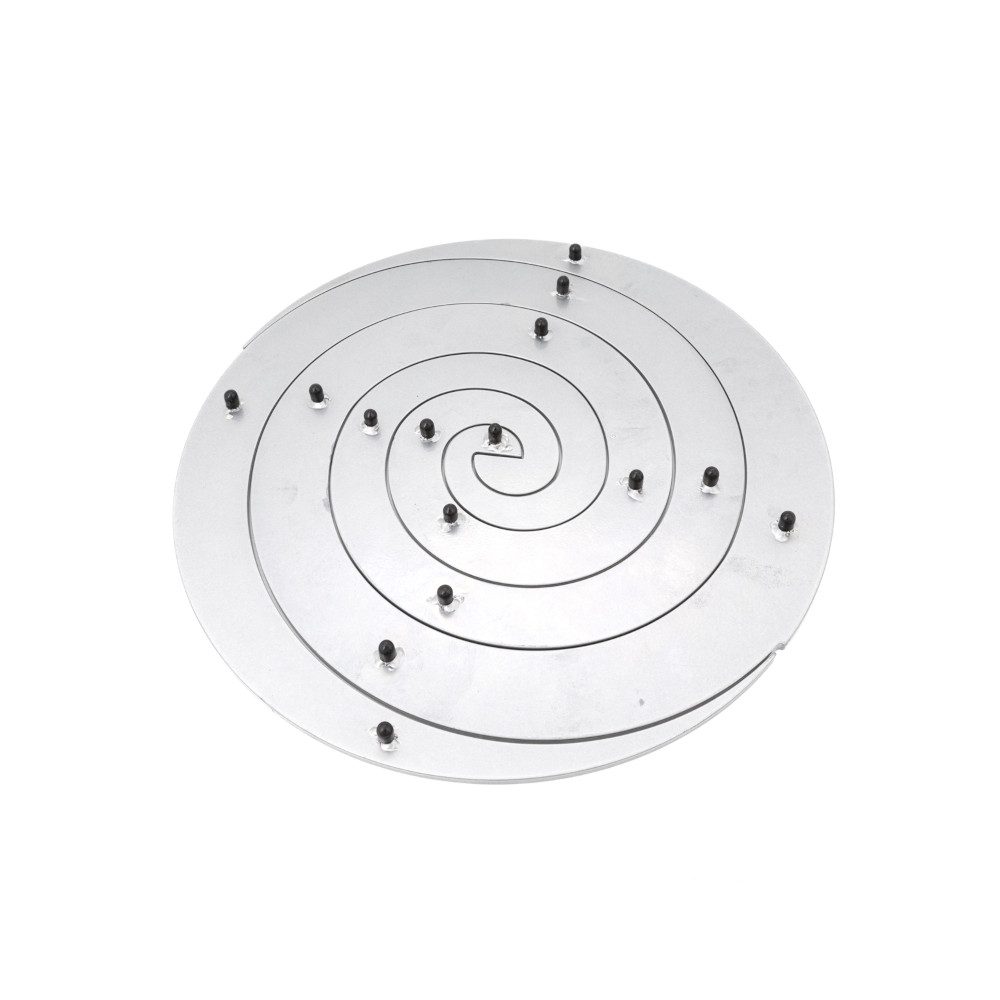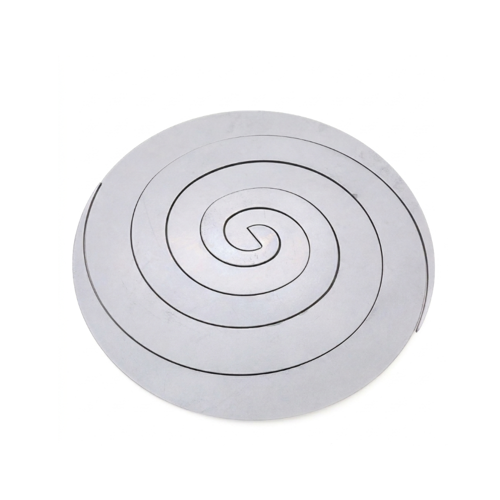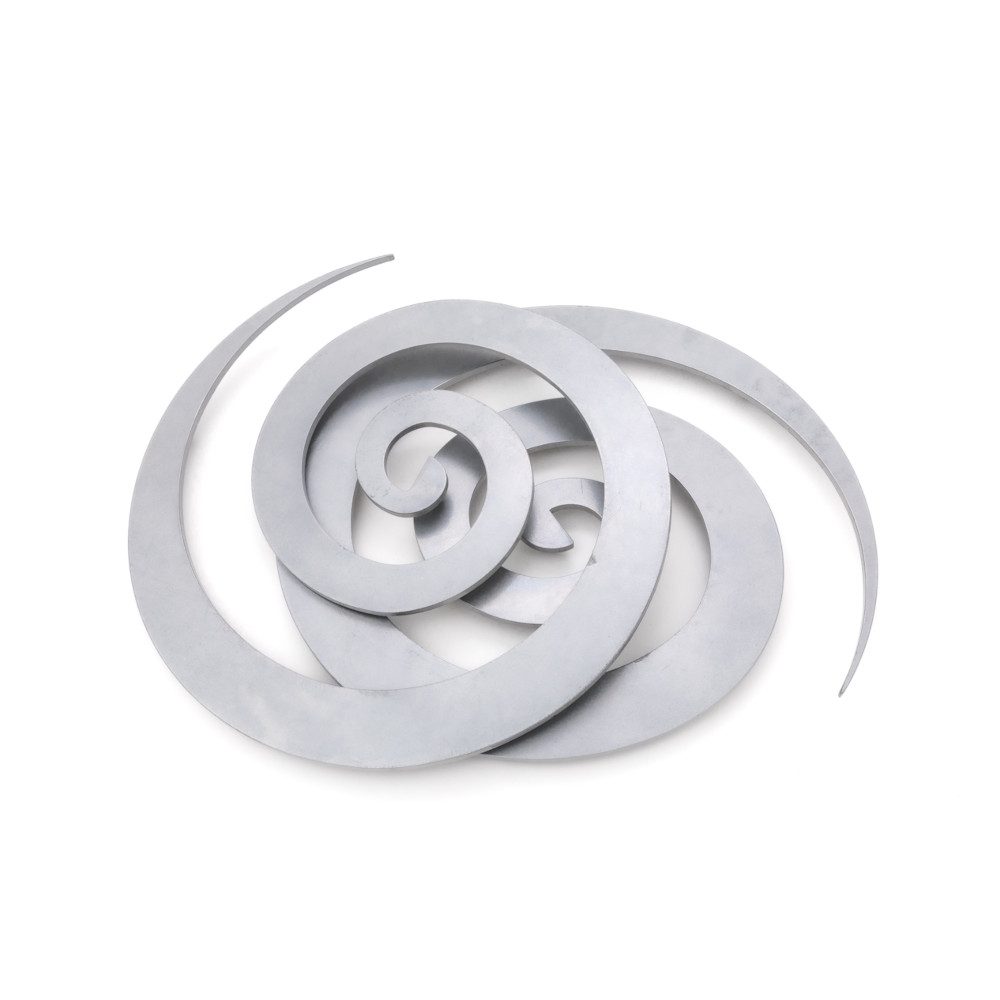 Protect your surfaces with this round silver steel trivet, hand-lasered with intricate patterns.