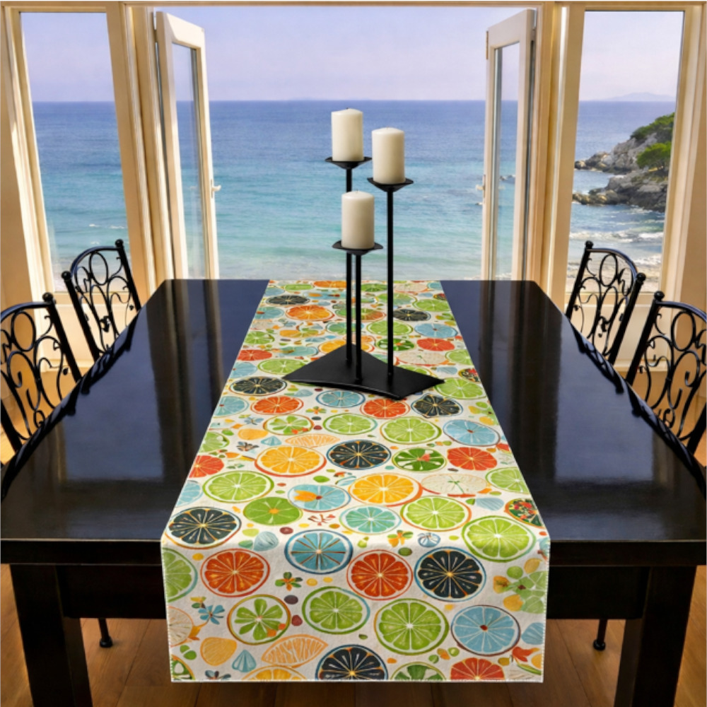Transform your dining space with this Cut Lemons Table Runner. Designed to serve as a stunning visual anchor, our runners effortlessly tie together your centrepieces and linens for a cohesive, professional look.