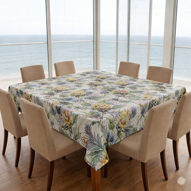 Brighten up your table with the beautiful trendy Premium Fabric of this Tablecloth Square – Protea Theme.