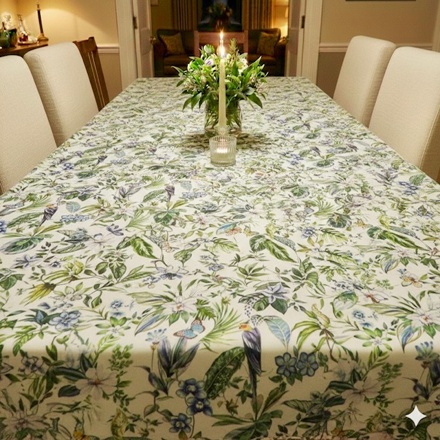 Brighten up your table with the beautiful trendy Premium Fabric of this Tablecloth – Tropical Blue.