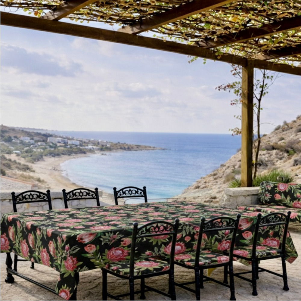 Tablecloth Water Resistant – Protea On Black